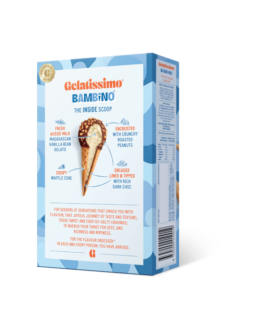 Gelatissimo Bambino 6 Gelato Minis - Madagascan Vanilla Bean & Roasted Nuts 180mL x 10 in box