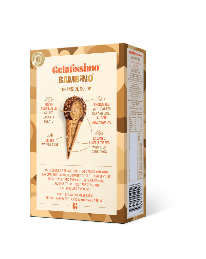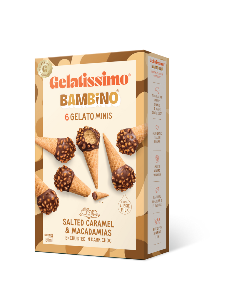 Gelatissimo Bambino 6 Gelato Minis - Salted Caramel & Macadamias 180mL x 10 in box