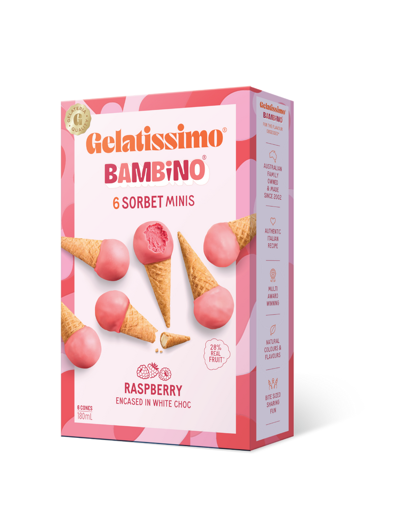 Gelatissimo Bambino 6 Sorbet Minis - Raspberry 180mL x 10 in box