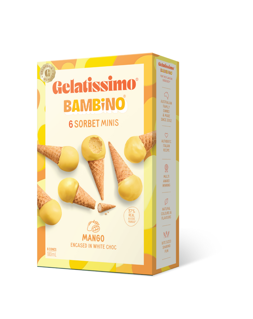 Gelatissimo Bambino 6 Sorbet Minis - Mango 180mL x 10 in box