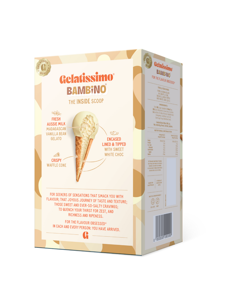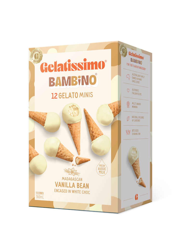 Gelatissimo Bambino 12 Gelato Minis - Madagascan Vanilla Bean 360mL x 8 in box